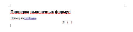 Затем я решил попробовать совместить уже готовые инструменты при помощи скриптов командной оболочки: Pandoc и LibreOffice. Через Python можно обращаться к работающему LibreOffice и через него править документ. Всё просто замечательно! Однако возникла беда с формулами: не все формулы нормально отрисовывались. Возьмём пример из Gostdown: